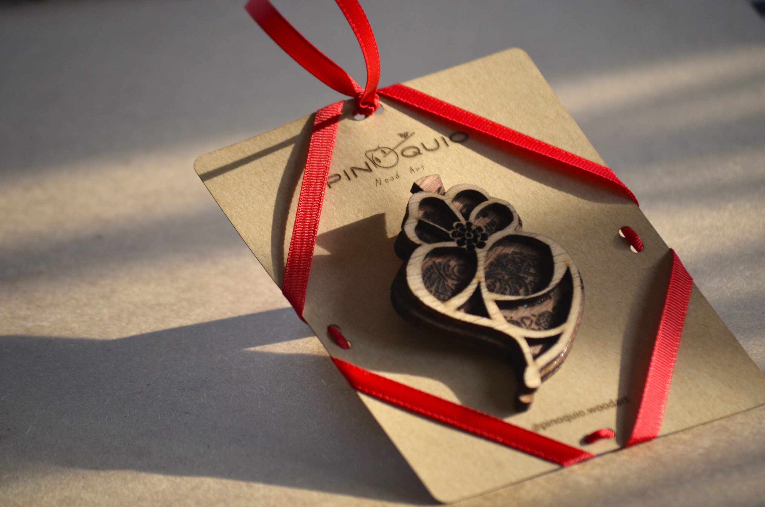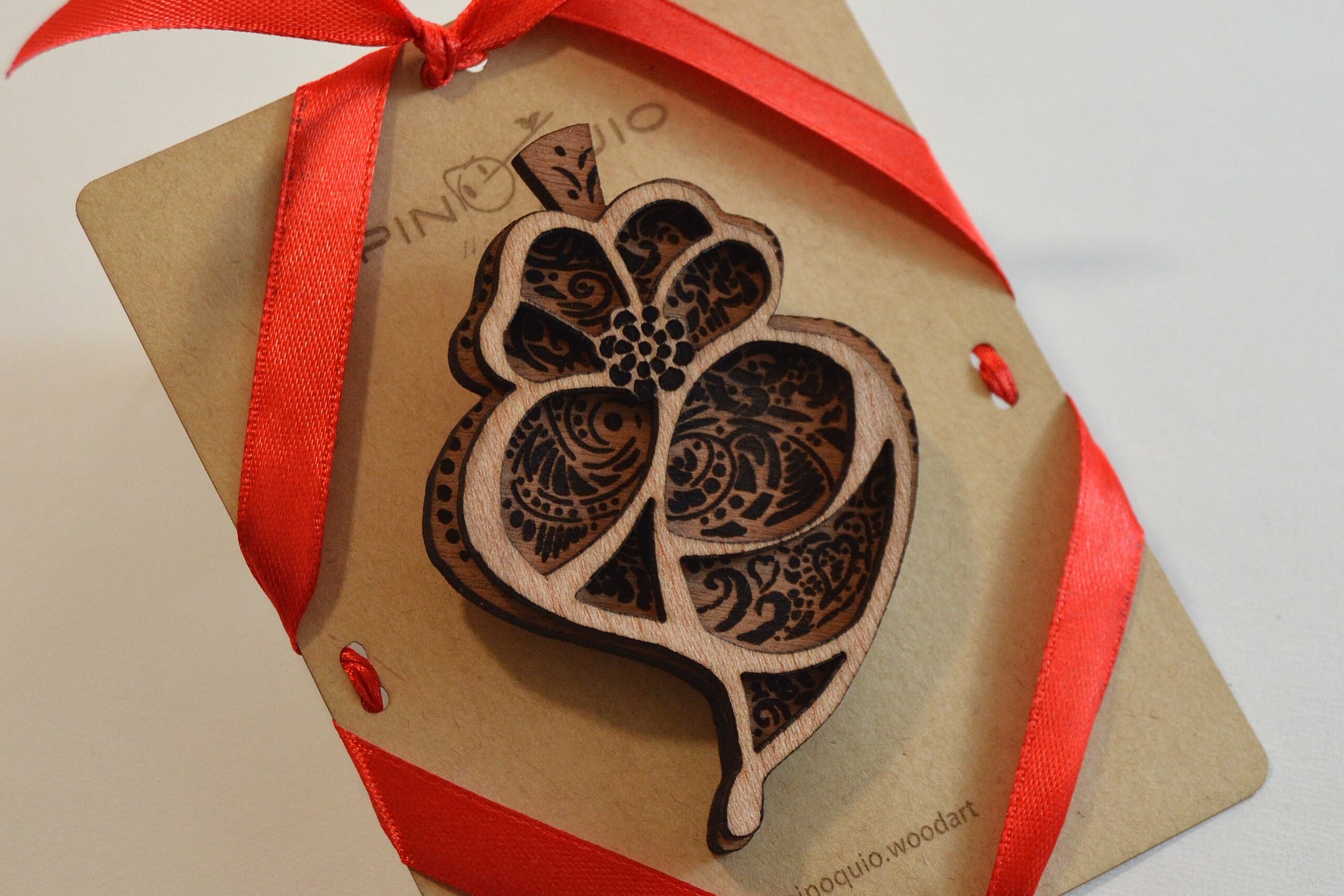 Alfinete de peito em madeira – Coração de Viana