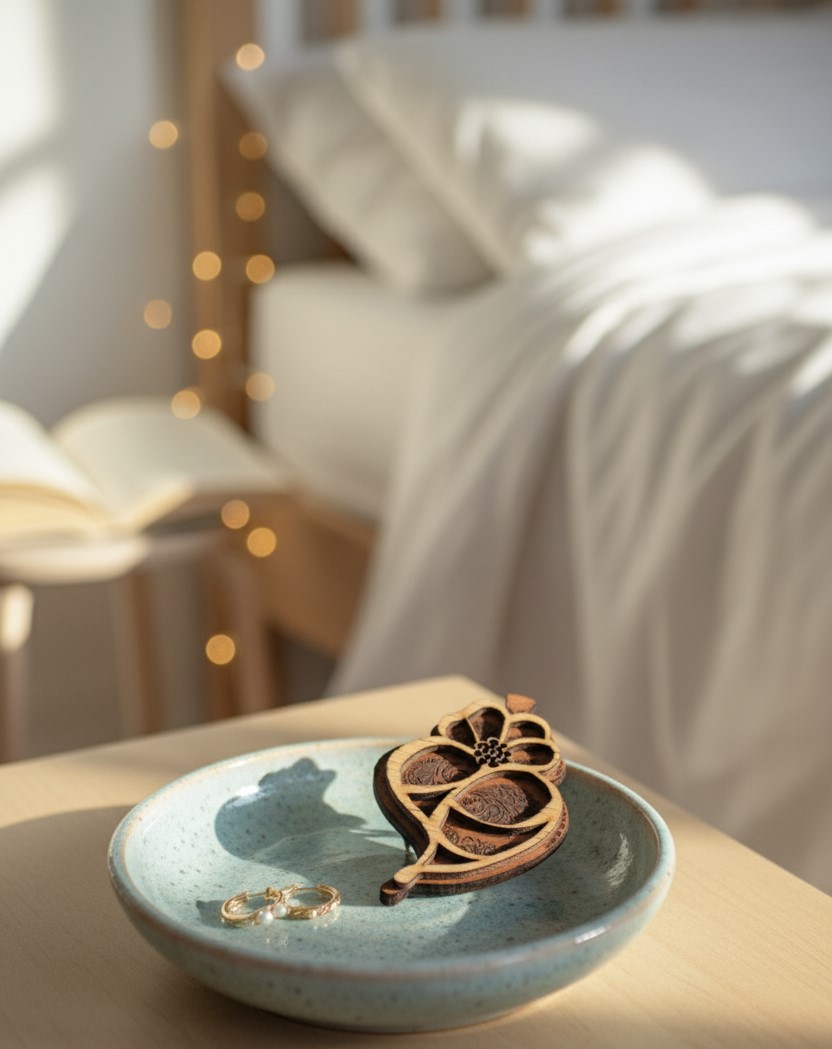 Destaque seu estilo com esta pregadeira em madeira de design exclusivo, inspirada em filigrana, o nosso emblemático coração de Viana.