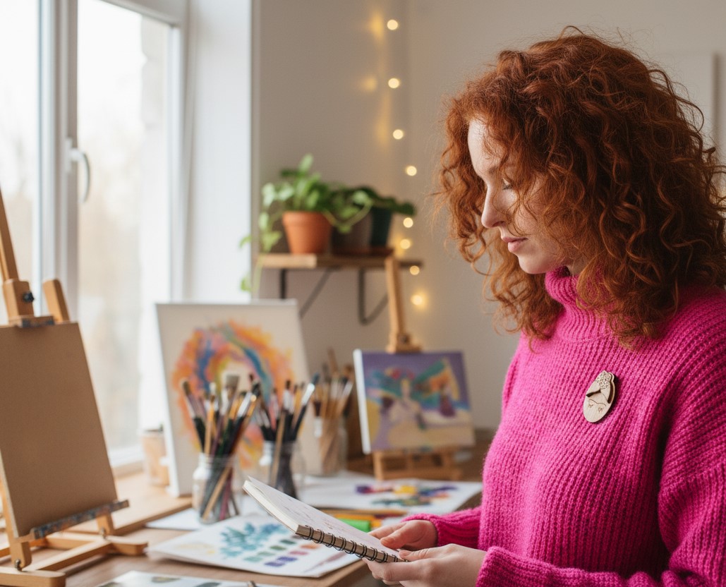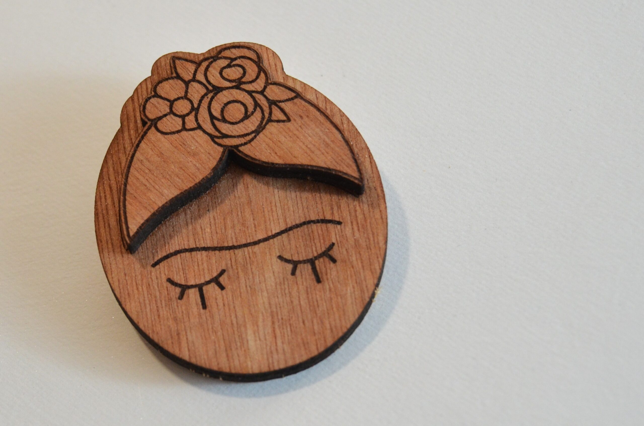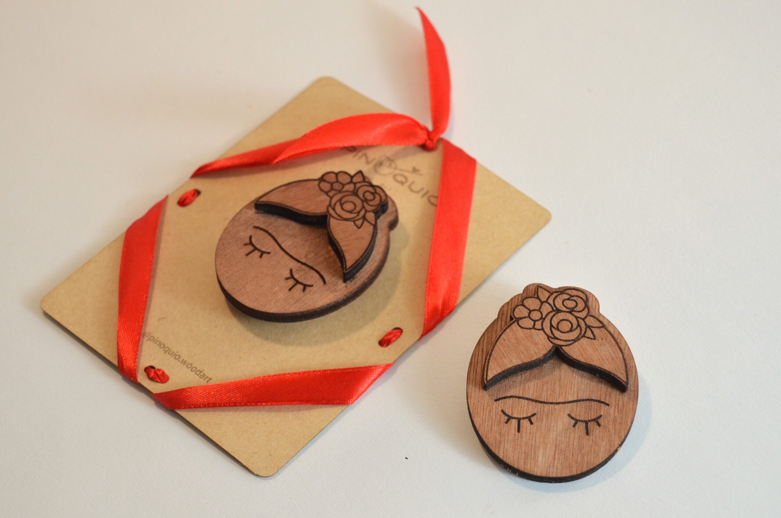 Destaque seu estilo com esta pregadeira em madeira de design exclusivo, inspirada na icônica Frida Kahlo.