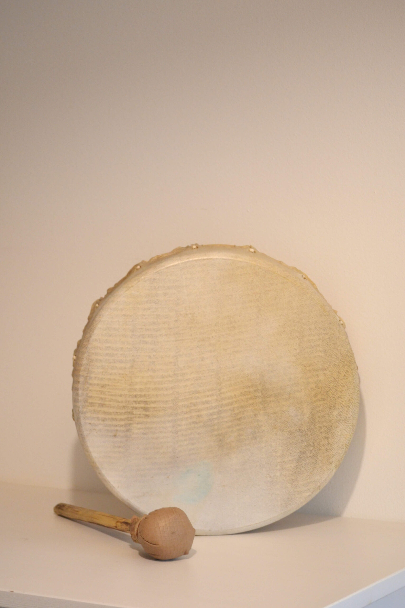 Tambor xamânico artesanal de 35cm de diâmetro, com pele de cabra natural