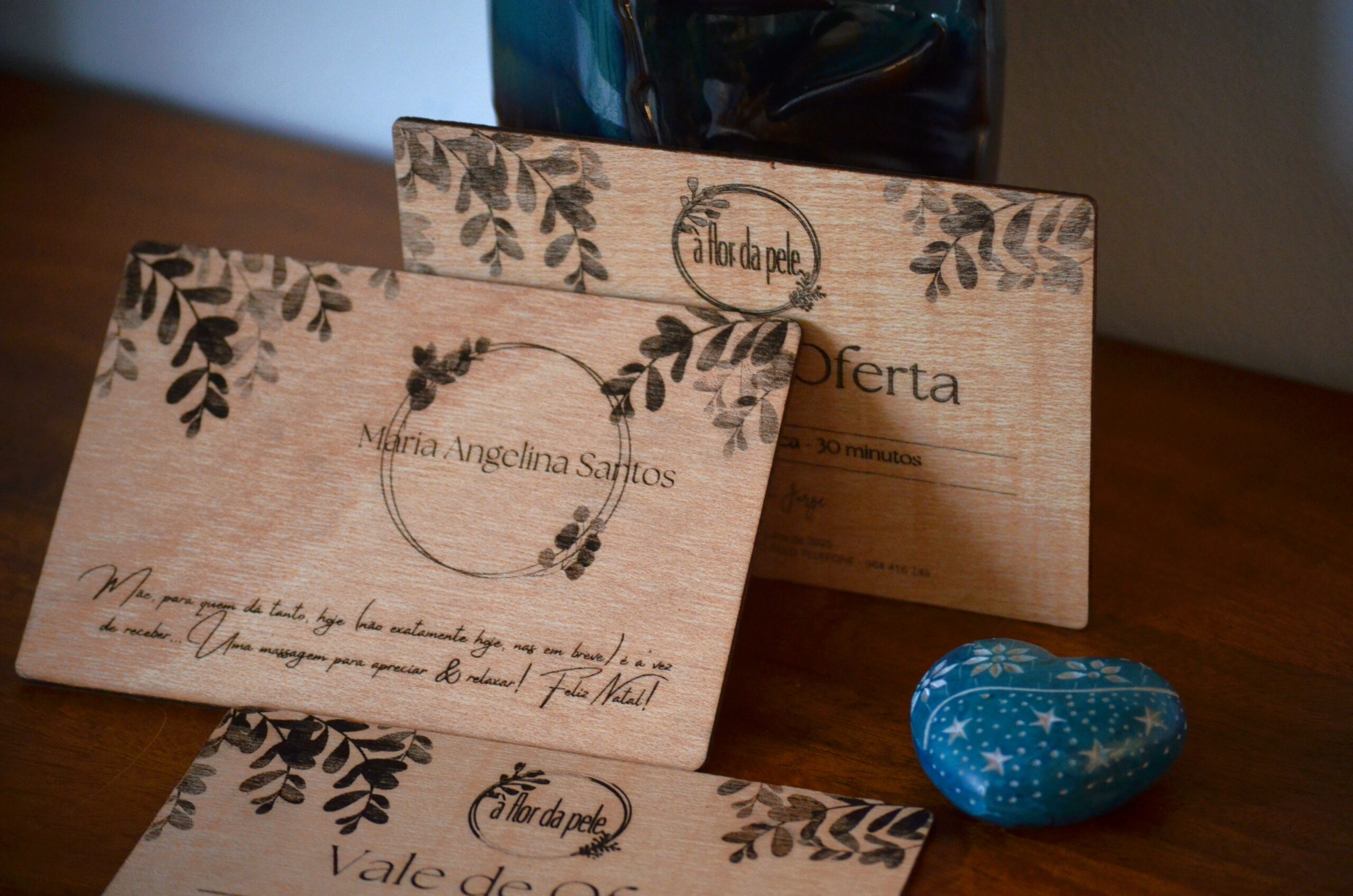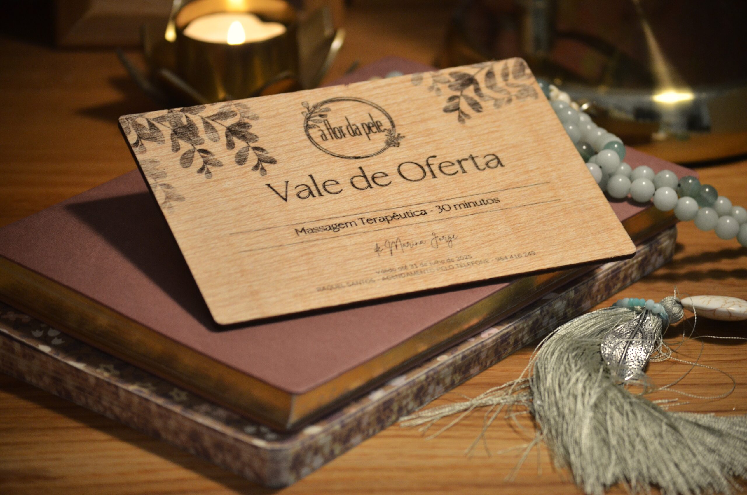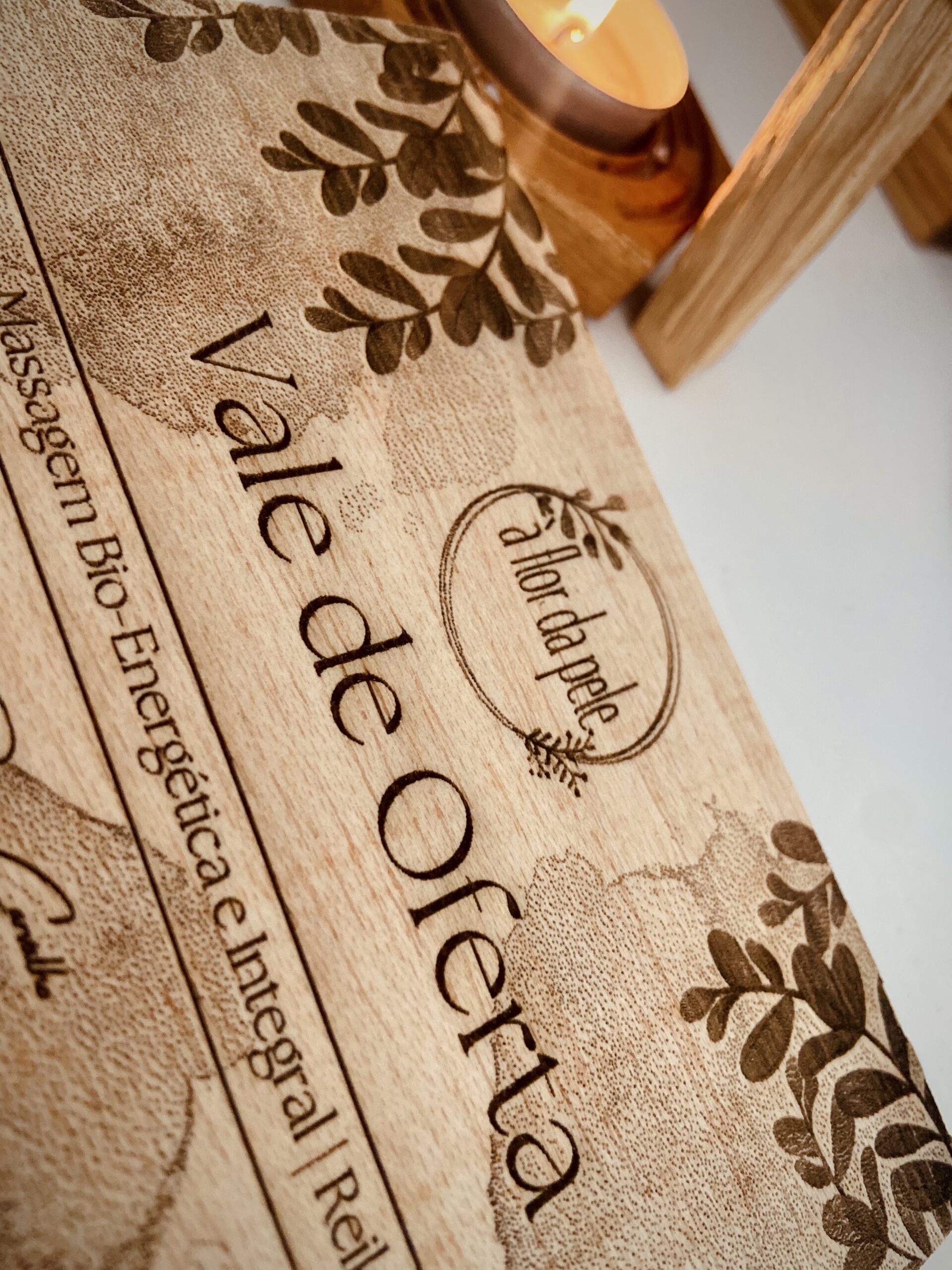 Cartões de Oferta exclusivos com gravação a laser, perfeitos para SPA, terapias e experiências.